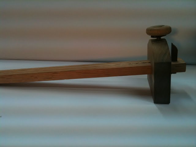 So with the plans to make a couple marking gauges starting this past weekend, what should appear at the Logan Cabinet Shoppe blog? Why a podcast on this very subject, of course. The wood working gods were smiling upon me. In the video, which I highly recommend to everyone, (Bob is in the latest Popular Woodworking issue by the way), Bob shows a quick bit about how he uses a dowel, instead of a wedge, to "mass produce" the gauges. Que the light bulb.
