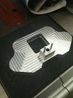 So we left off with a plane body cut to final shape, surfaced on two sides, and with a "landing spot" for a tool holder. The next logical progression would of course be to make the tool holder. This tool holder is designed to hold a 3/8" allen wrench. If this arrangement doesn't work out, or I decided it doesn't hold and edge long enough, I can always make a new tool holder. Maybe one to hold the Veritas replacement irons. So to hold a hexagonal blade, you need a hexagonal hole. By using the smallest end mill available we were able to keep corner clean out to a minimum and just take a few swipes with a triangle file.