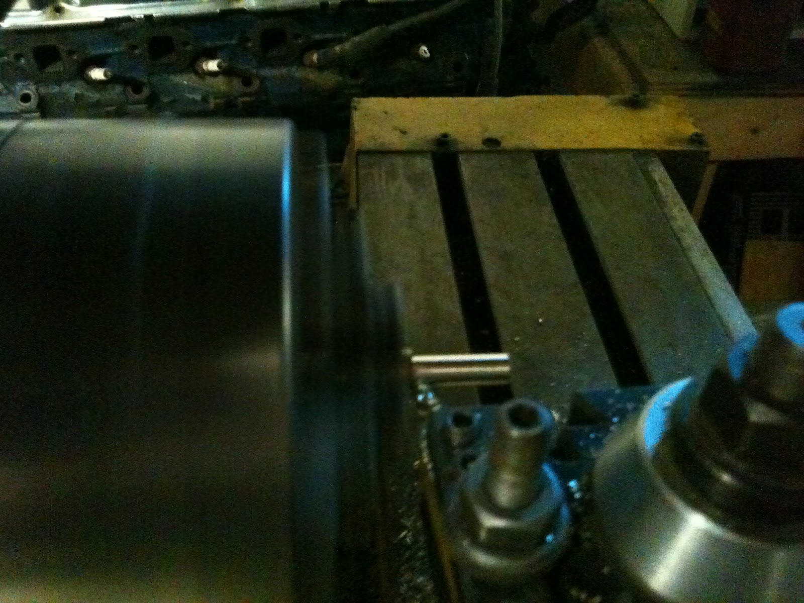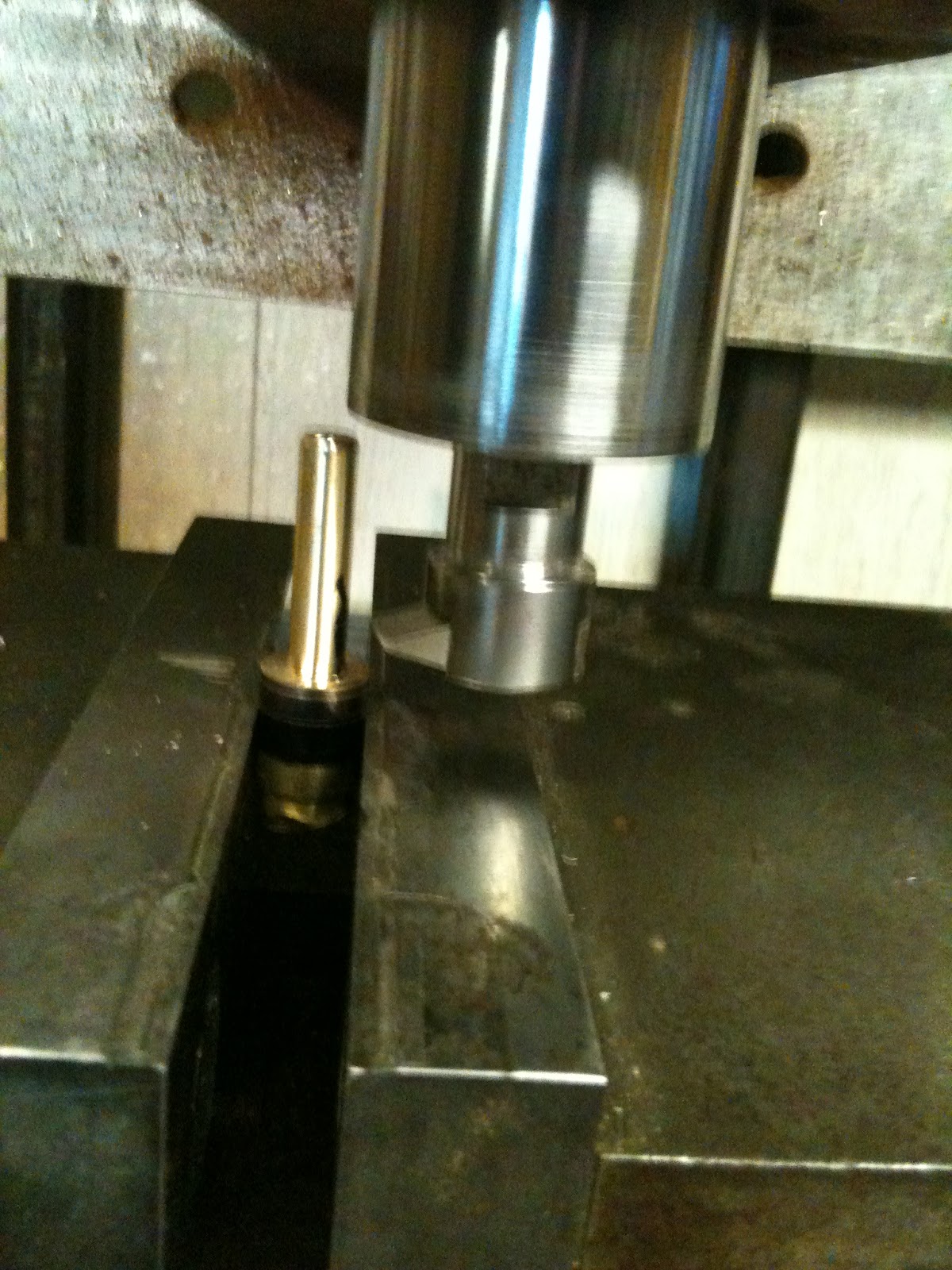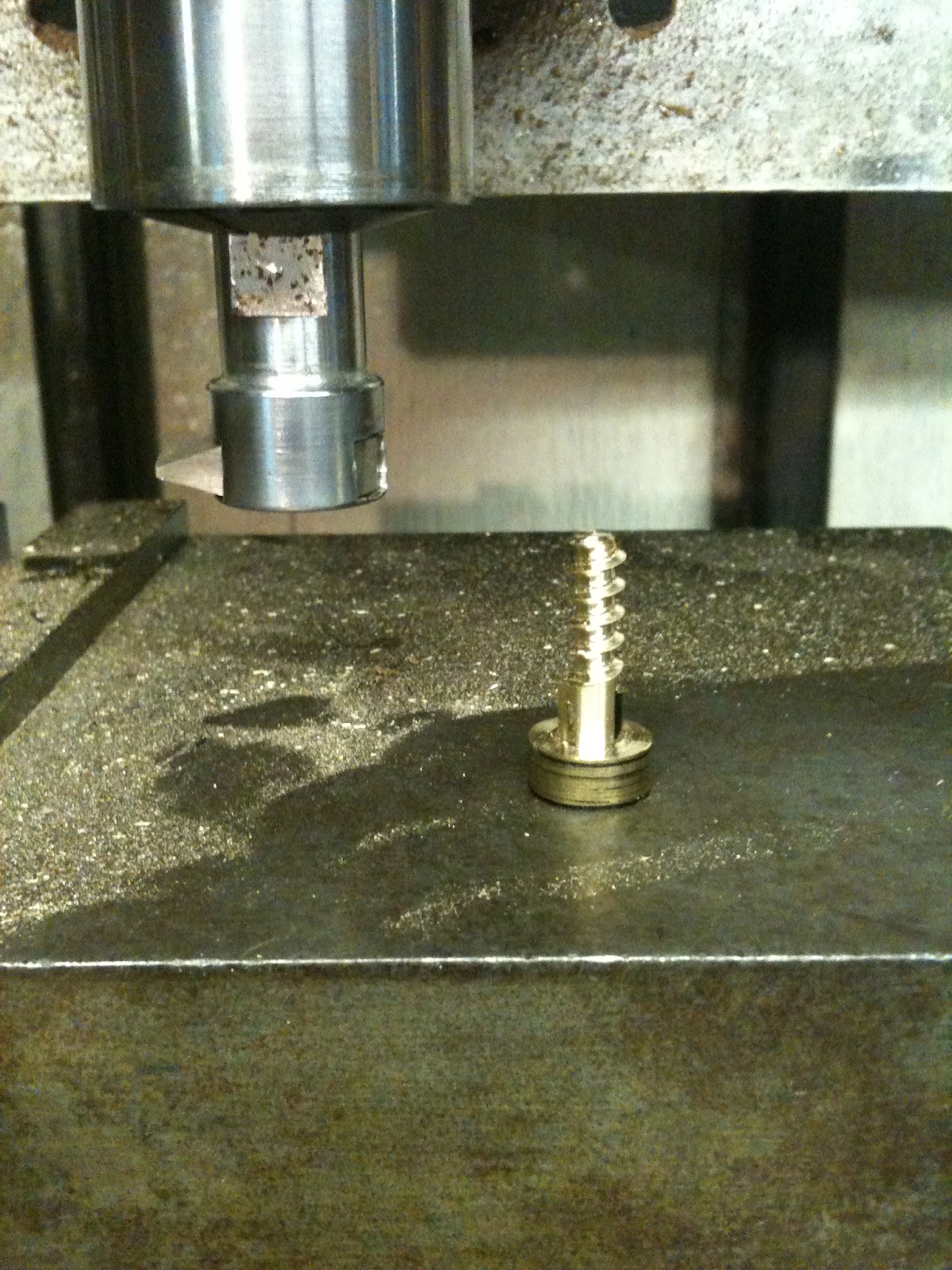 Now, as a reader of my blog, I am sure you know that I am on a first name basis with a local machinist. If not refer to this post. He is always willing to impart his knowledge to me, and works cheap. That being said, I'm sure next time he needs a little wood work done, I'll be his first call. So here are some shots of the work to reproduce my screw in fine brass. Turns out his lathe didn't have the proper settings for a 9 thread per inch cut, so we used his CNC to get the job done.