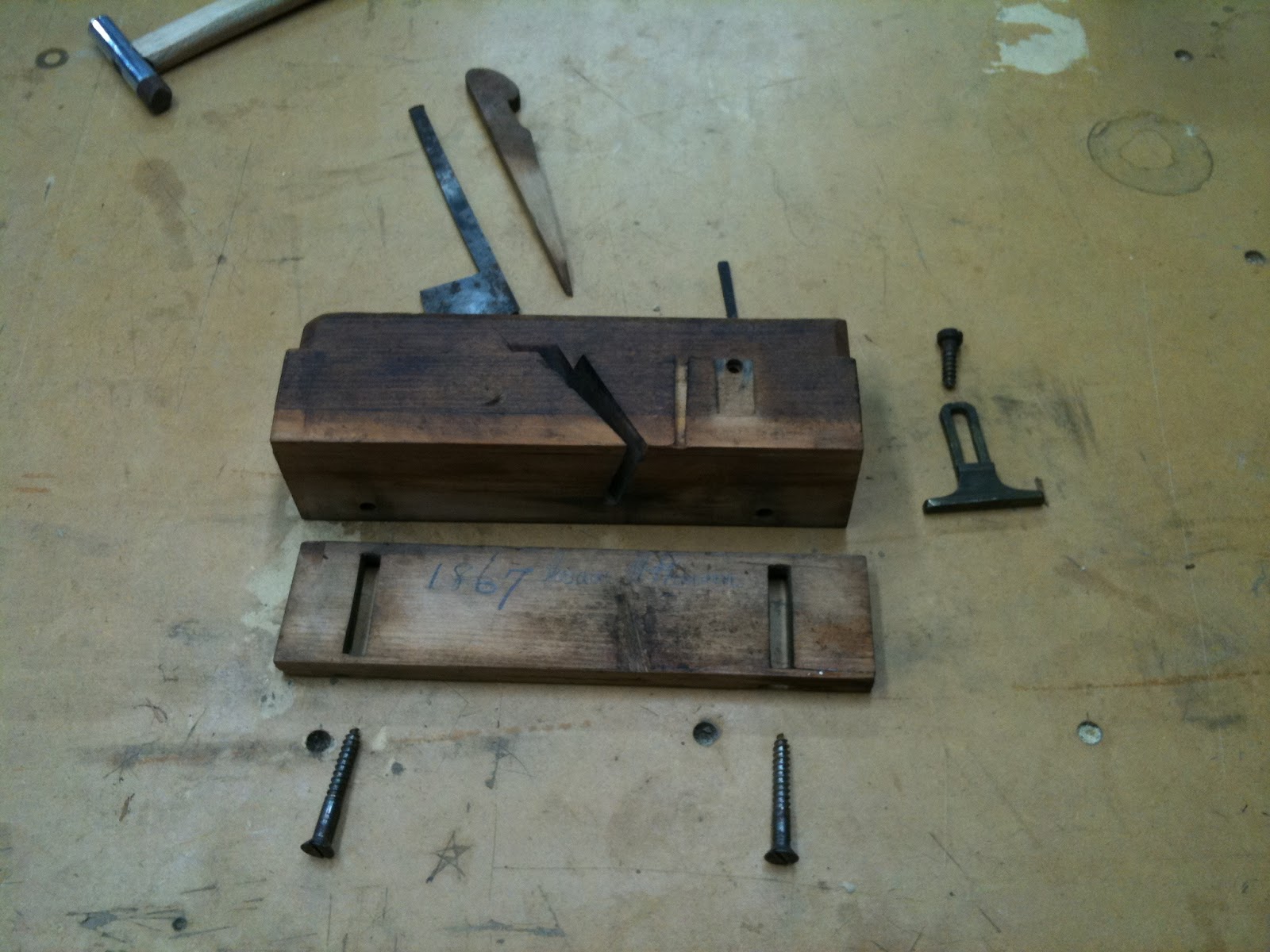 So, do you remember my last post about my new 144 year old moving fillister? Since the last time I showed her to you I've been a bad owner. I let her take a tumble from bench height, all the way to the concrete floor of the garage. With baited breath, I picked her up and examined for damage. I'll hand it to her, she's a tough old bird. The only wounds I saw were some cracking in the fence, which was worn thin from years of use anyway. I applied the liquid of life, glue in this case, and put a bandage of quarter sawn white oak over her weak section. For a few minutes it was touch and go, but she pulled through alright. I prescribed shelf rest for a couple of weeks whilst I was at work in England, and came home to find her good as new, or so I thought.